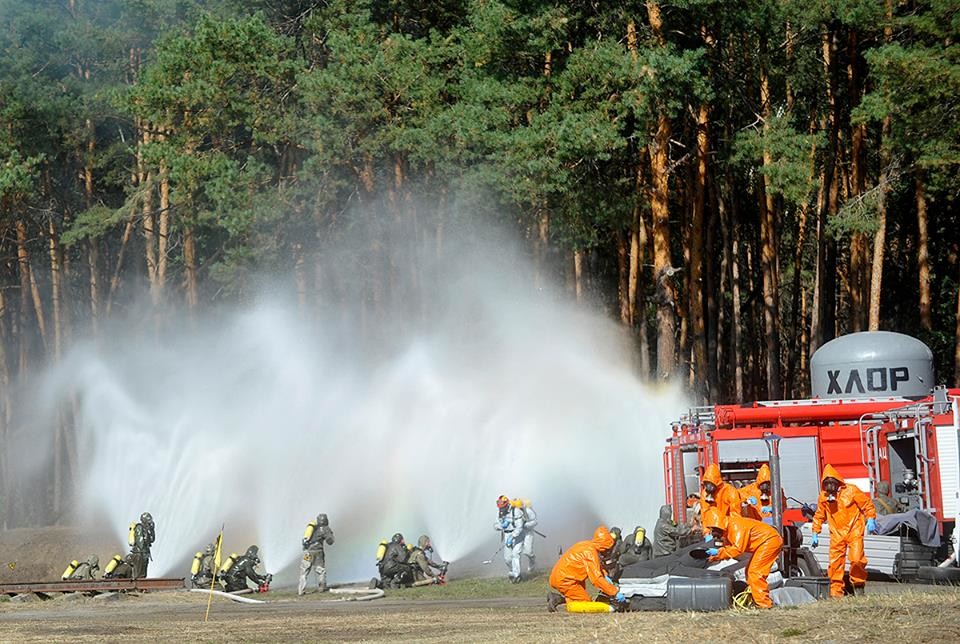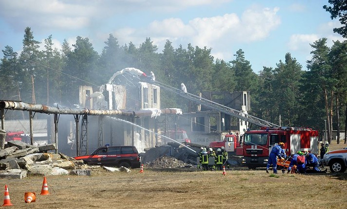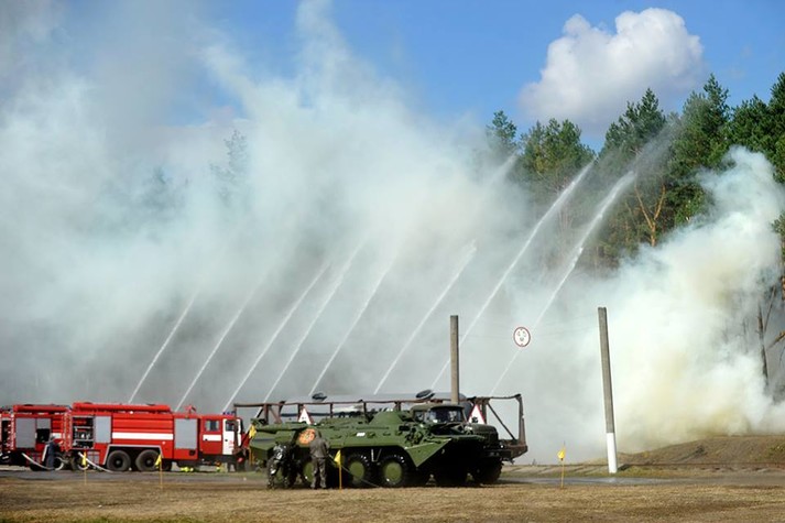 В демонстраційних пожежно-рятувальних навчаннях взяли участь частини та підрозділи сил ДСНС різного спрямування: десантно-рятувальні підрозділи з використанням спеціальних вертольотів, пошукові підрозділи, в складі яких працювали кінологи, медики та психологи, підрозділи радіохімічної розвідки, пожежники, вибухотехніки. Особливістю навчань були застосування пожежної авіації – літаків АН-3211 та вертольоту Мі-8МТ, які успішно провели контрольні гасіння лісової пожежі.
