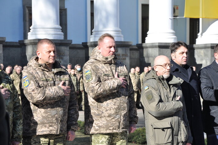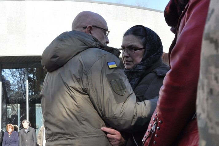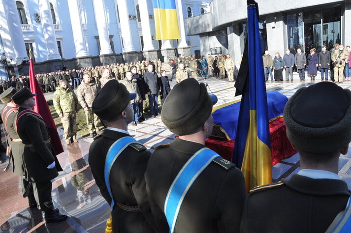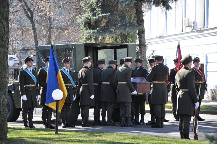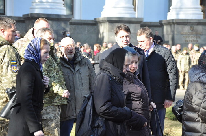 Після відспівування в Свято-Троїцькому храмі в Залі Пам'яті МО України пройшла церемонія прощання із загиблим офіцером. В церемонії прощання взяли участь міністр оборони Олексій Резніков та головнокомандувач Збройних Сил України Валерій Залужний.
