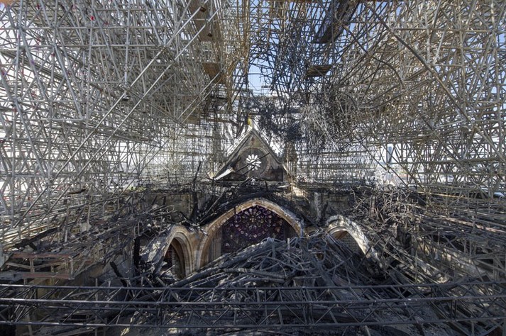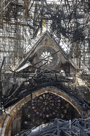 Внаслідок пожежі обвалився шпиль Нотр-Дам де Парі. Основну конструкцію Собору Паризької Богоматері вдалося врятувати.