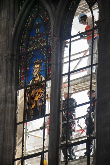 «Реставратори працюють 24 години на добу, щоб врятувати будівлю, пошкоджену полум'ям, вогнем і дощем», - зазначив Томас Гойск.