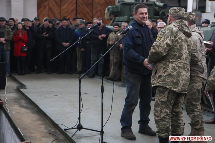«Представники нашої військової частини хотіли подякувати особовому складу бронетанкового заводу житомирського за вагомий внесок у розбудову держави, за підтримання бронетанкової техніки нашої частини у бойовій готовності для виконання завдань за призначенням у зоні АТО», – сказав заступник командира 54-го окремого розвідувального батальйону з озброєння Олександр Гончар.