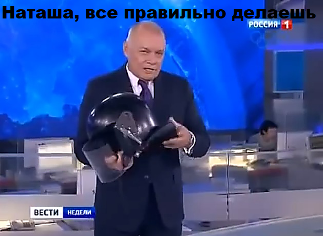 Варто зазначити, що у соцмережах журналістку відразу почали порівнювати з іншим пропагандистом – сумнозвісним росіянином Дмитром Кисельовим, який свого часу приносив до студії поліцейський шолом.