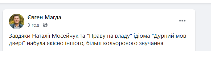«Мені вартувало великих зусиль притягти сюди цей атрибут – атрибут протестів. Це двері з Офісу президента, двері з Банкової. Я б не сказала, що це – символ протестів, які сталися в суботу. Я б сказала, що це – жертва протестів. І слава богу, що це жертва не жива. Але отак ми будемо, крізь бите скло, дивитися на ці події й думати, чи здатні ми домовитися й чути одне одного», – сказала Мосейчук.