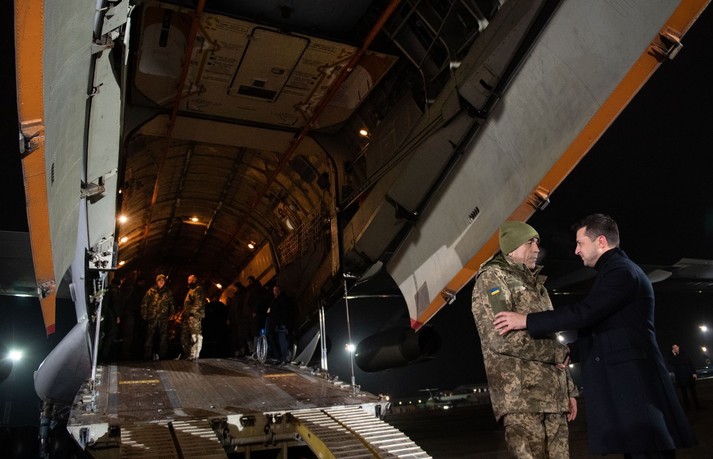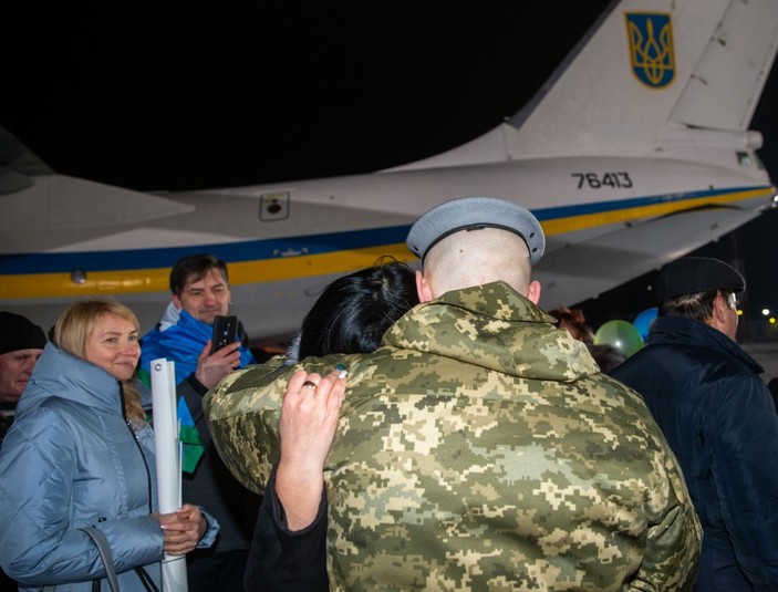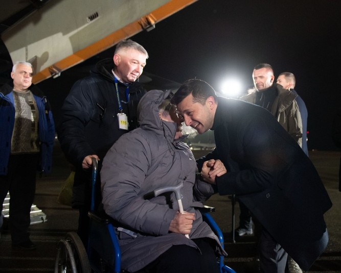 Близько 21:40 в аеропорт «Бориспіль» прилетів спецборт з колишніми полоненими українцями. Літак зустрічав президент України Володимир Зеленський.
