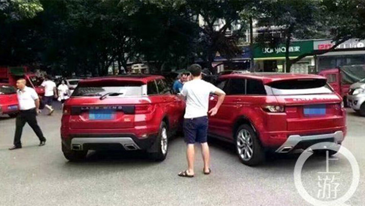 Два автомобілі майже з ідентичним дизайном і однаковим червоним кольором потрапили в незначне ДТП в місті Чунцин. Машини отримали дрібні пошкодження. Прибула поліція встановила, що в аварії винен водій Landwind X7, тепер він повинен відшкодувати збитки.