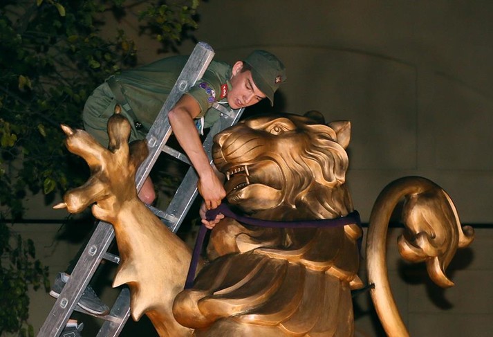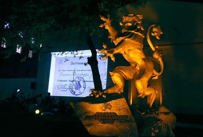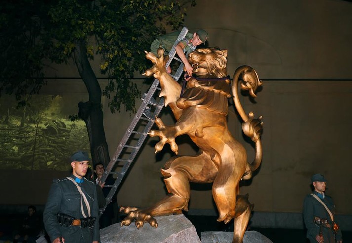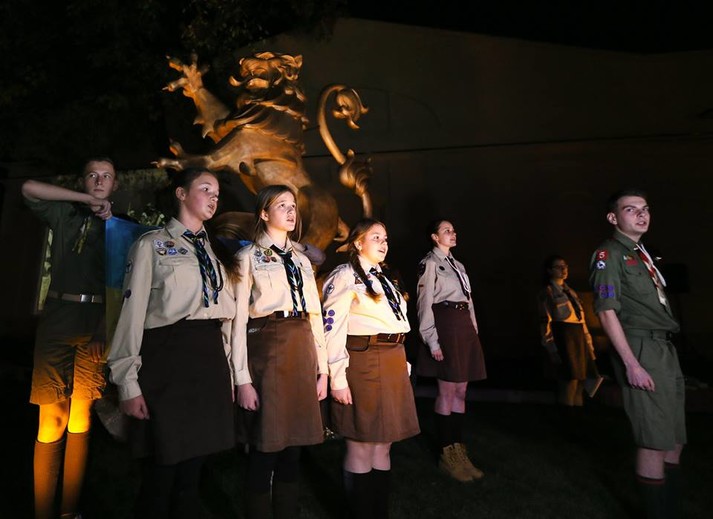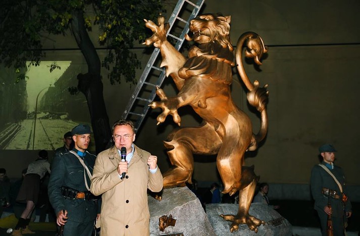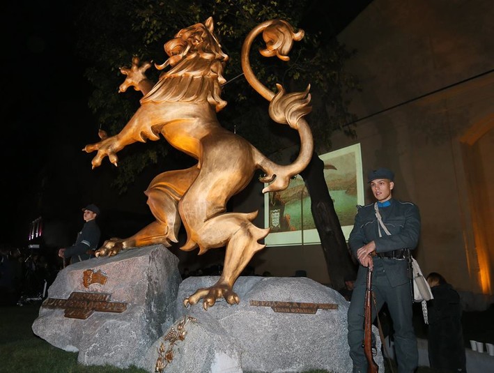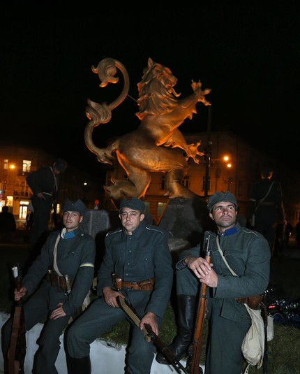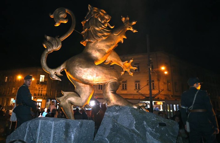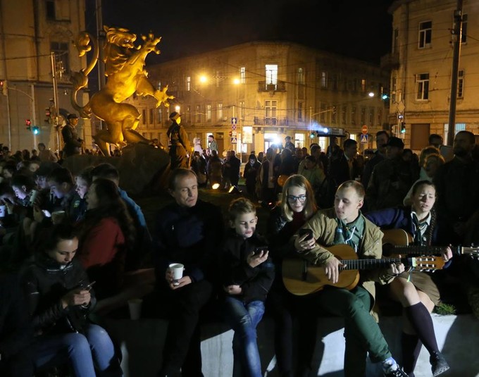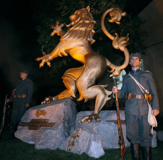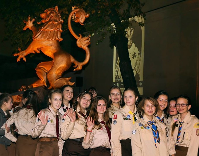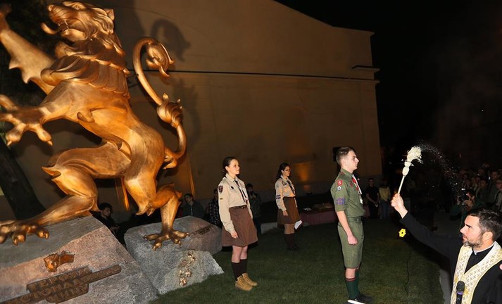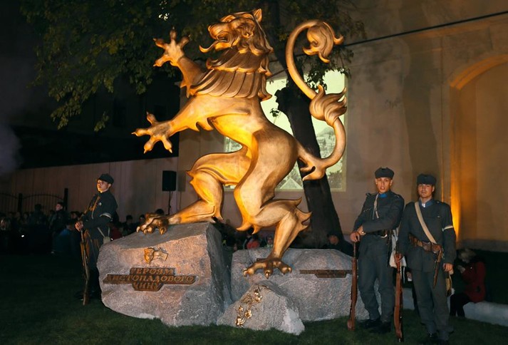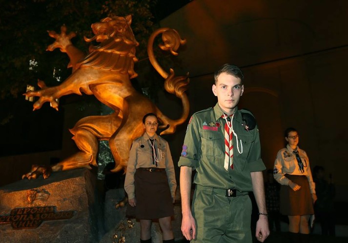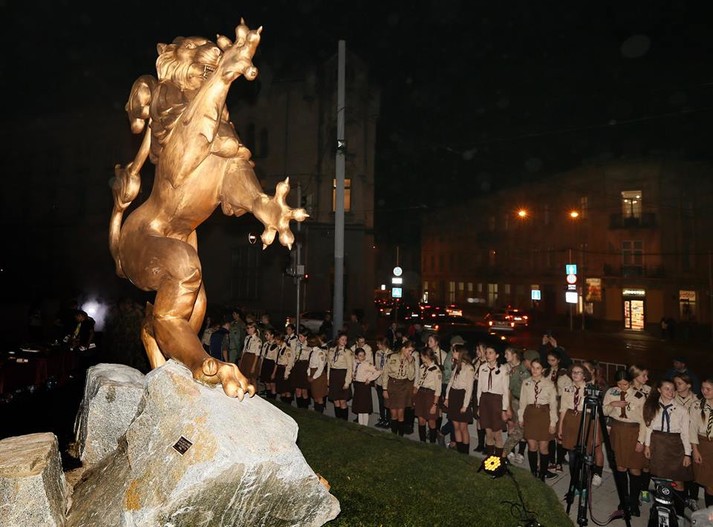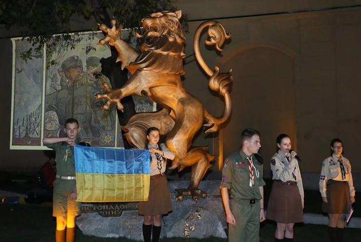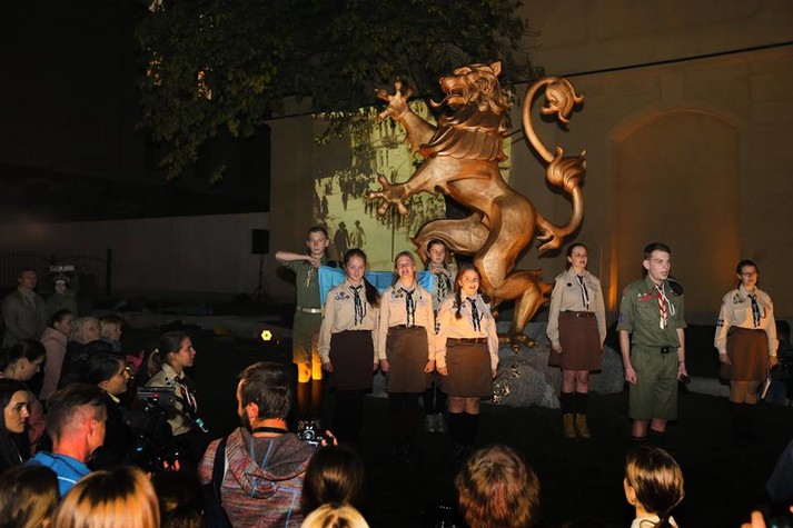 До ватри приєднався міський голова Львова Андрій Садовий. Він зазначив, що ЗУНР була молода, але горда і сильна держава, яка передала цю естафету сучасному поколінню. Після цього самого лева символічно посвятили у пластуни ‒ одягнули на нього пластунську хустку під пісню «Мій лицарський хрест». Учасники дійства взялись за руки і утворили живий ланцюг довкола пам’ятника.