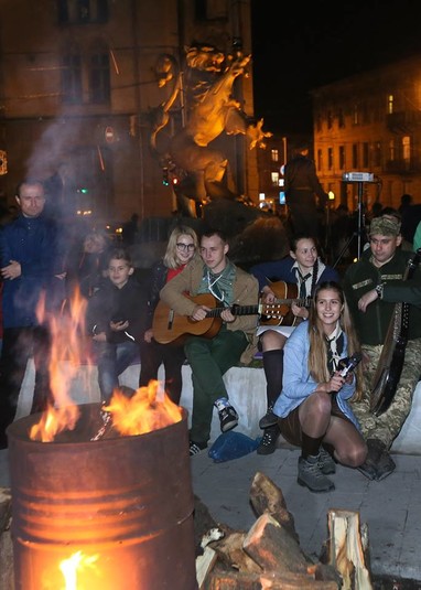 Після цього усі зібралися біля ватри, де почали співати стрілецьких пісень. Історики та громадські діячі розповідали цікаві історії про події Листопадового чину. Реконструктори в одностроях січових стрільців і УГА додали атмосфери сторічної давності.
