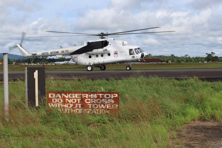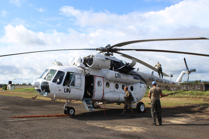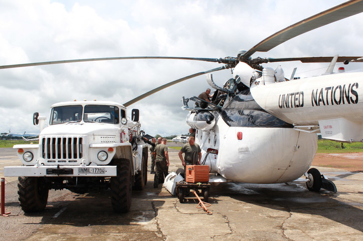 У важких метеорологічних умовах сезону дощів, затяжні зливи та постійна спека при, майже, стовідсотковій вологості повітря, особовий склад 56-го окремого вертолітного загону Національного контингенту Місії ООН у Ліберії продовжує успішно виконувати завдання.