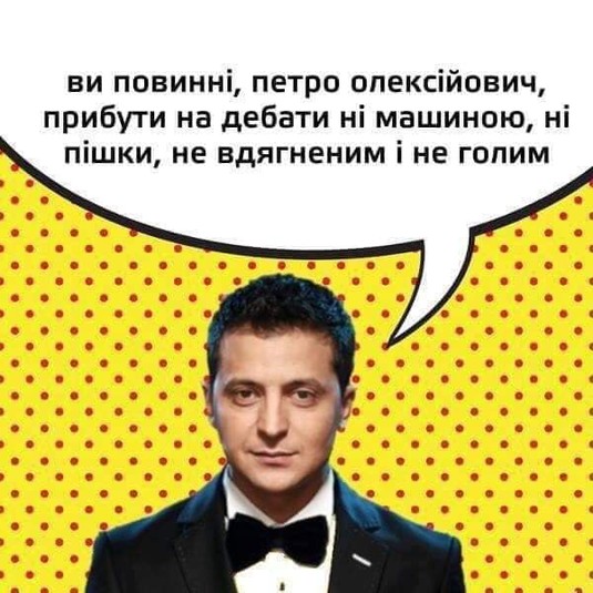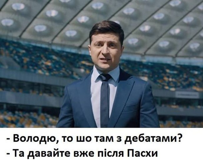 Ймовірні дебати Володимира Зеленського і Петра Порошенка, а також процес здачі ними медичних аналізів, викликав бурхливу реакцію в соціальних мережах. Жартівники в інтернет створили десятки фотожаб, в яких окрім самих кандидатів також згадали і про Юлію Тимошенко, і про олігарха Ігоря Коломойського та співаків Олега Винника та Святослава Вакарчука .