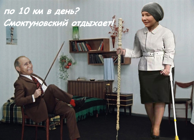 Цю події не оминули своєю увагою жартівники з соціальних мереж. Однак, варто зазначити, що фотожаби в доволі агресивній манері глузують зі спортивних досягнень Юлії Володимирівни. Зокрема, їхні автори нагадують про період перебування тодішнього лідера опозиції в колонії на Харківщині та її проблеми зі спиною, через які вона не мала змоги пересуватися.