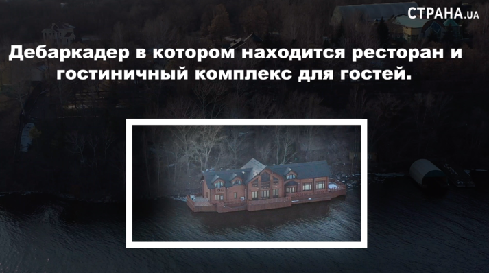 На ділянці в 10 гектарів, яка оформлена на організацію «Рікона ЛТД» (як пише Strana.ua, вона належить іншим офшорним фірмам Коломойського і Боголюбова), є великий спорткомплекс з критим тенісним кортом, футбольним полем і баскетбольним майданчиком. Також є дебаркадер з рестораном і номерами для гостей. Біля накритого причалу можна залишити невеликий моторний човен.