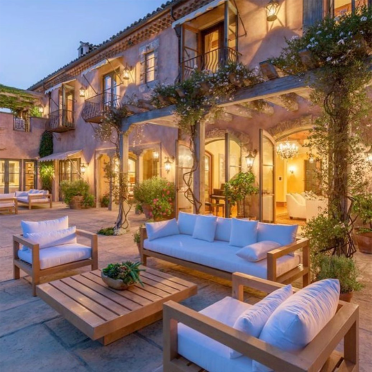 Будинок має площу 1800 квадратних метрів й облаштований за сучасними стандартами для найвибагливіших мешканців: 9 спалень, 16 ванних кімнат, мальовничий сад з дитячим майданчиком, величезний басейн, тенісний корт, тренажерна зала, винний льох, кінотеатр, спа-салон й гостьовий будиночок.