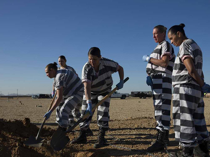 Висловлюючись простою мовою, вона передбачає спільне виконання арештантками чорної і некваліфікованої роботи, в процесі здійснення якої жінок сковують разом довгим ланцюгом.