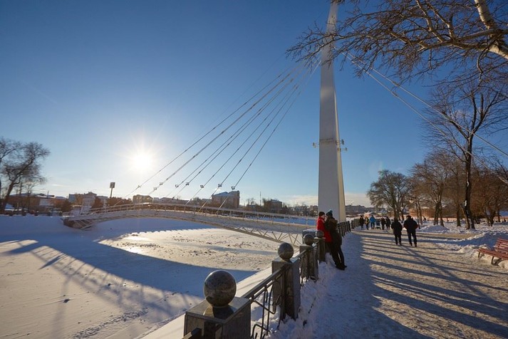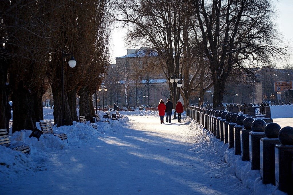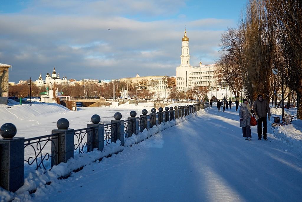Автентичний «шматочок» зими в самому центрі Харкова Сніг, тихі алеї скверу, сім'ї, які гуляють та годують маленьких пташенят. 12 фото На весь екран