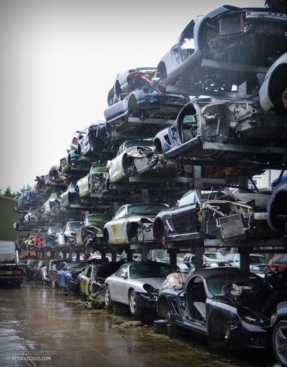 Серед них можна побачити спорткари Ferrari, Pininfarina, Lotus і безліч різних Porsche. Всі вони поступово відправляються під прес, а з більшості з них вже були зняті деякі запчастини для продажу.
