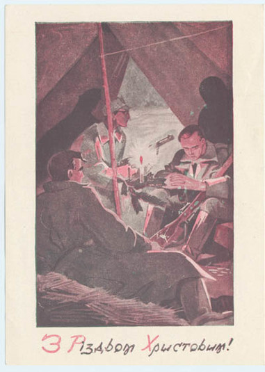 Партизани Української Повстанської армії намагалися жити повноцінним життям, у тому числі святкували Різдво й Новий рік Ці мальовані і друковані листівки олюднюють дещо забронзовілий образ націоналістичного підпілля. 8 фото На весь екран