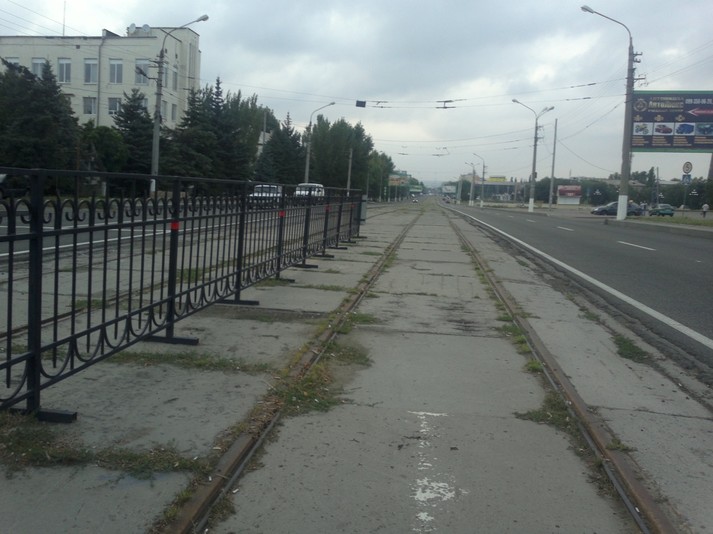 У розпал робочого дня на вулицях міста ви не помітите людей. Трамваї перестали працювати ще влітку 2014 року. Зараз немає навіть рейок і контактних проводів.