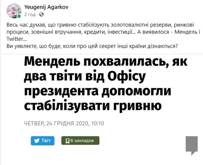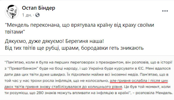 Як жартують над Мендель, яка заявила, що її пости в Twitter стабілізували гривню