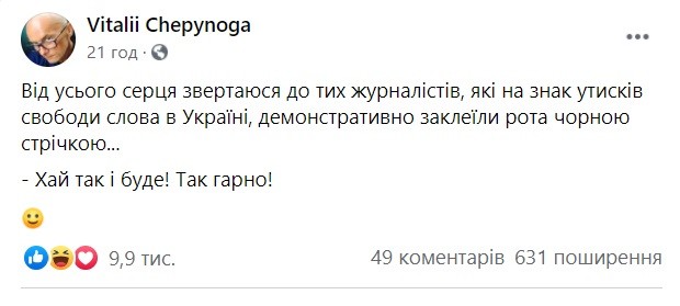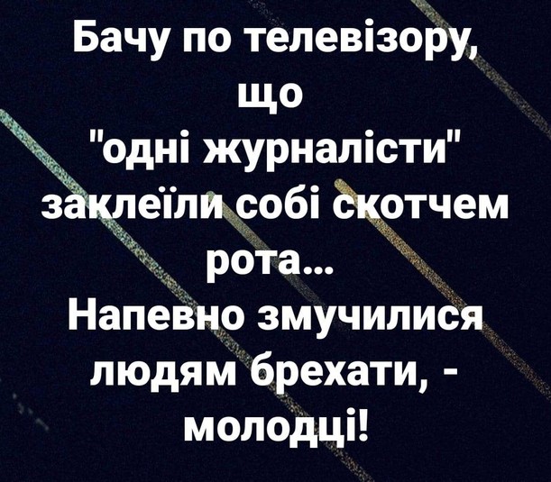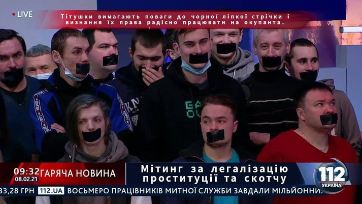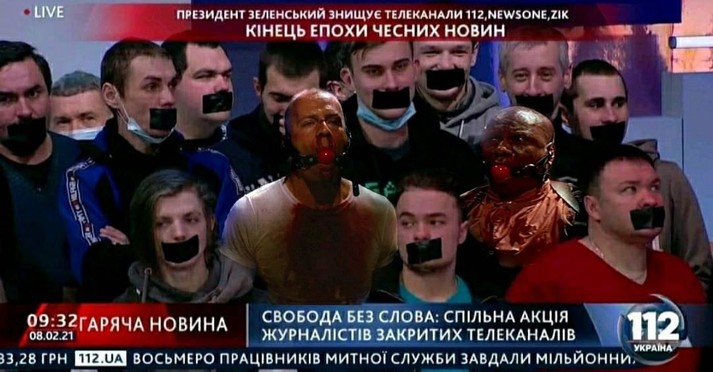 У студіях телеканалів «112 Україна», NewsOne і ZIK знімальні групи з’явилися в етері із заліпленими ротами. За словами журналістів, це символізує обмеження свободи слова в Україні. А от на думку деяких жартівників з мережі, таким чином працівники пропагандистських телеканалів демонструють, що вони вже втомилися брехати своїм глядачам.