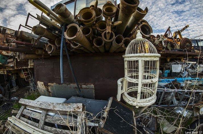 «Приємною особливістю цього звалища, крім масштабів, які вражають, стала повна відсутність огорожі - звалище розміщена посеред поля, і будь-хто може приїхати туди і залишити свій автомобіль. Поруч постійно їздять кар'єрні самоскиди. Усередині ж «тачок» живуть птахи і коти», - коментує свої світлини блогер Lana Sator.