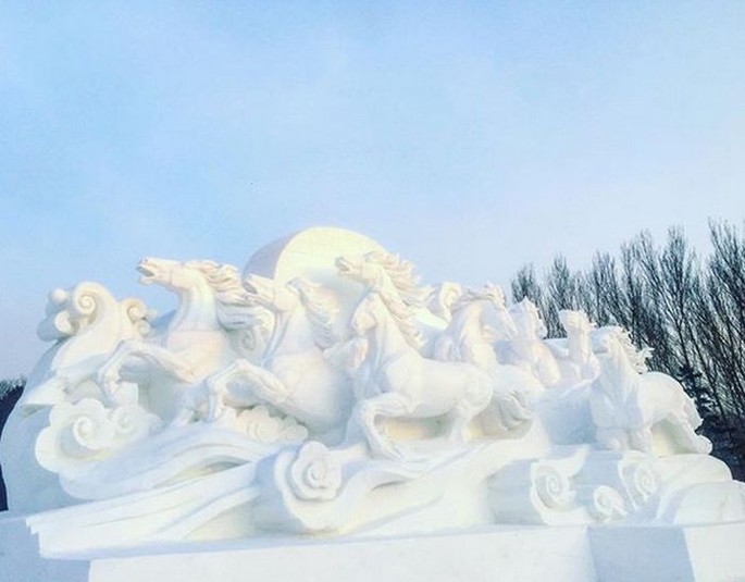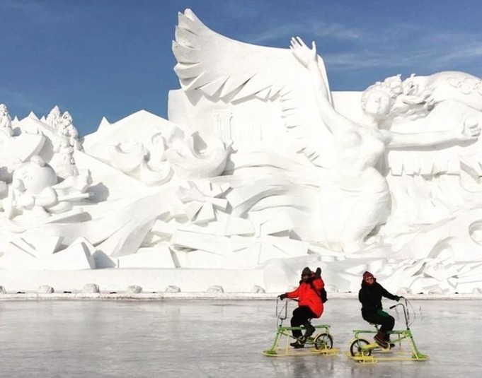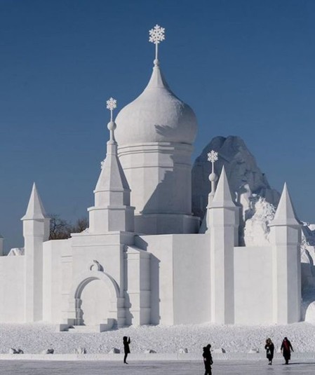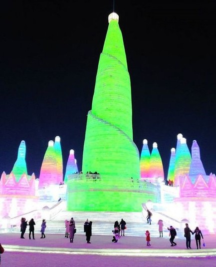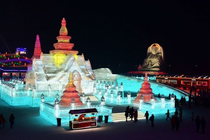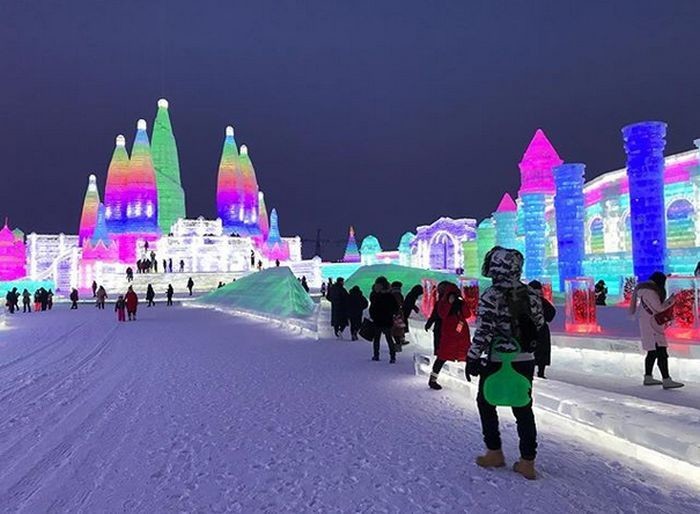 Один з найбільших в світі фестивалів снігу і льоду відкрився в китайському місті Харбін на початку січня. Для створення льодового містечка, що займає площу в 500 тисяч квадратних метрів, знадобилося 200 тисяч кубометрів льоду і снігу.