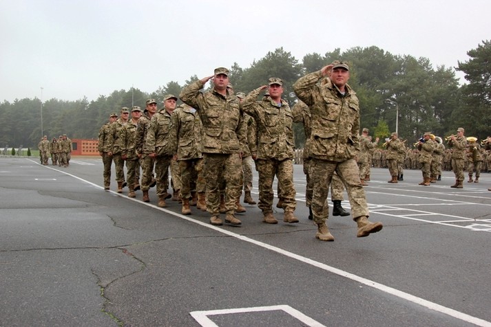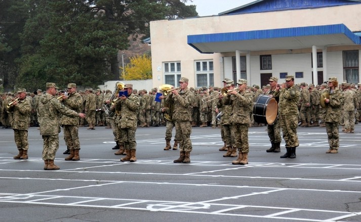 На плацу військової частини з нагоди завершення зборів резерву відбулось урочисте шикування.