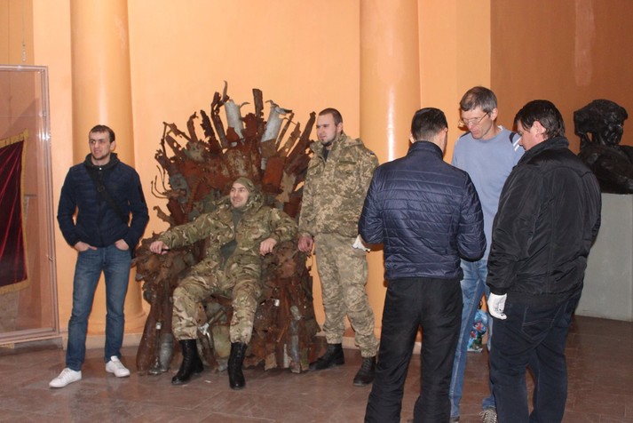 Вчора, 14 березня, відбулась офіційна презентація «трону» як музейного експонату під час відкриття виставки, присвяченої українським добровольцям.
