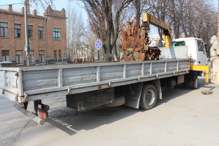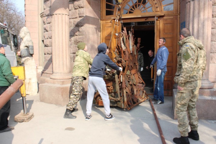 Кілька місяців запорізькі волонтери збирали уламки боєприпасів з фронту, щоб створити залізний трон як символ війни