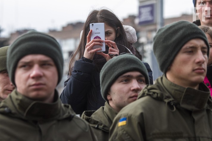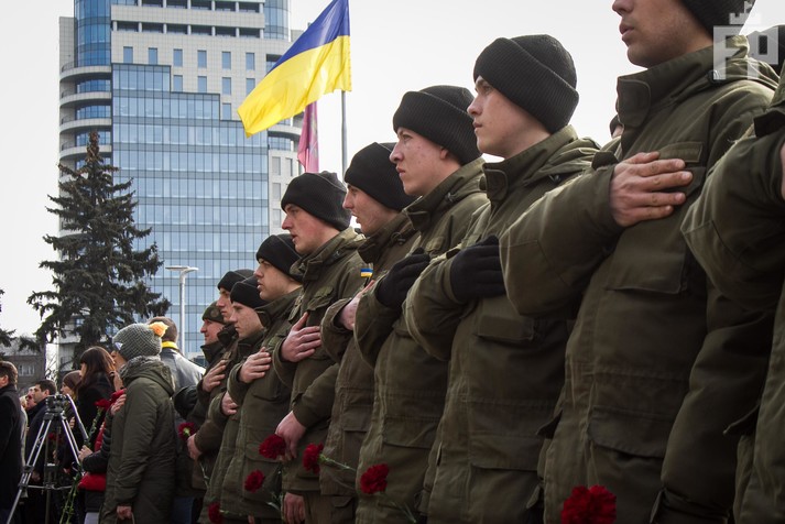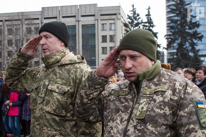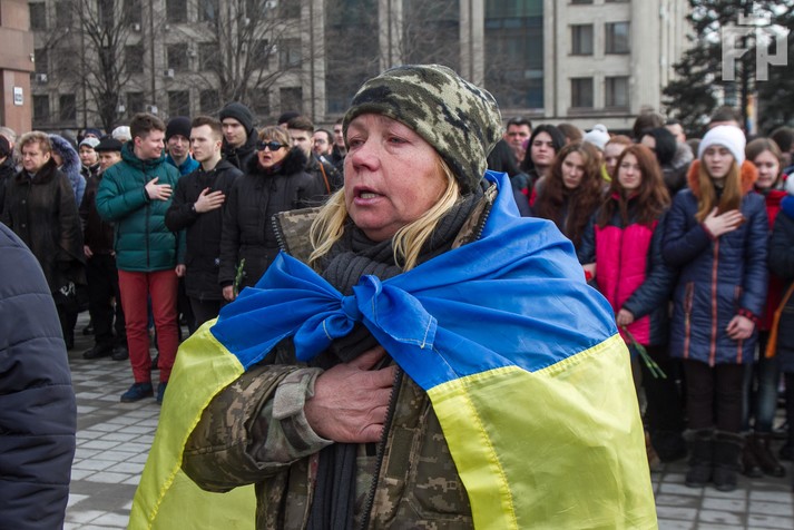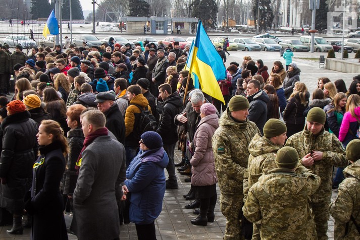 На площі Героїв Революції Гідності зібралися сотні городян – керівництво міста та області, військові, волонтери, силовики, активісти