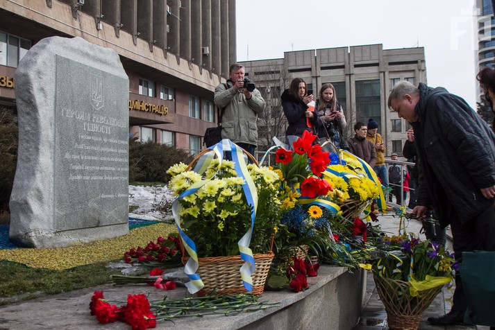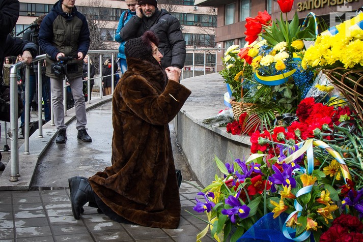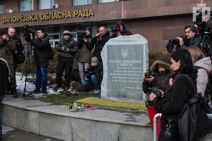 Після мітингу запорожці поклали квіти біля пам'ятника Героїв революції. Охочих вшанувати пам'ять загиблих було настільки багато, що людям довелося стояти в черзі, щоб покласти свій букет і запалити свічки.