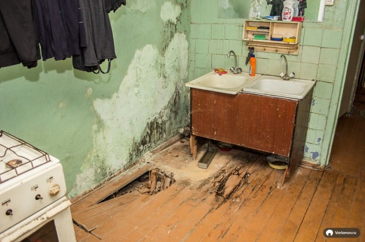 «Мешканці кажуть, що робити ремонт марно: все облазить і вкривається пліснявою. Крім того, багато кімнат знімають квартиранти, яким немає ніякого діла до спільного майна», – написав Ілля Варламов.