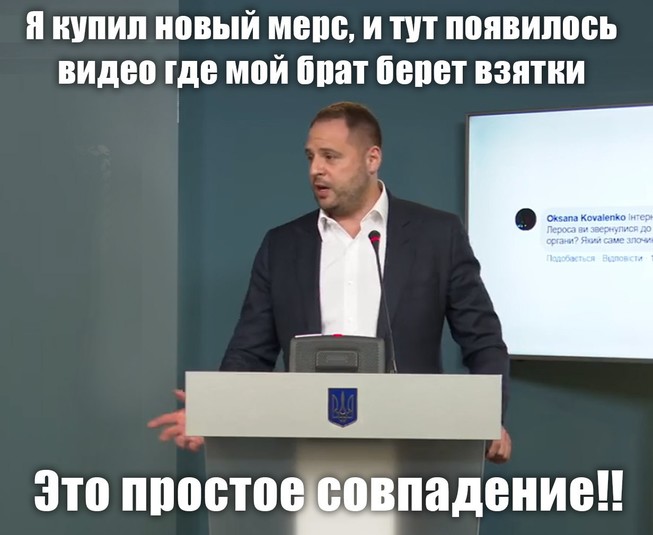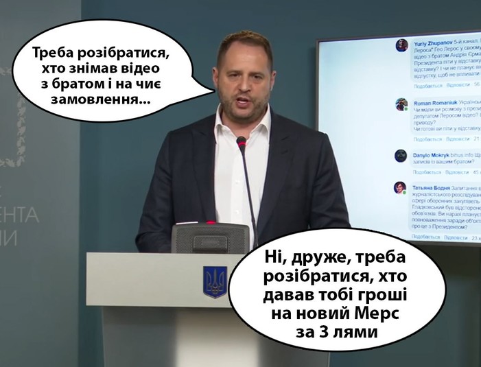Сьогодні глава Офісу президента провів брифінг, на якому прокоментував останній корупційний скандал за участю свого брата. Однак, його відповіді лише спровокували появу нових фотожаб.