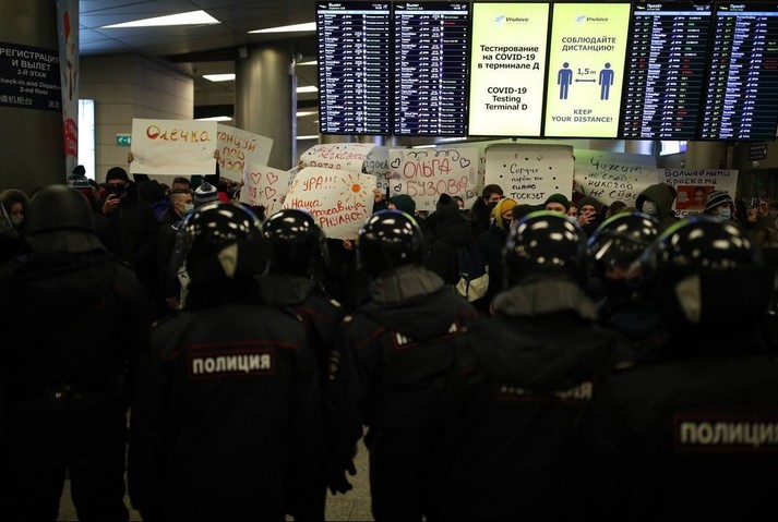 Жах і ненависть у «Внуково»: російська поліція затримує соратників Навального (фото)