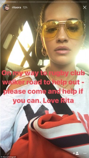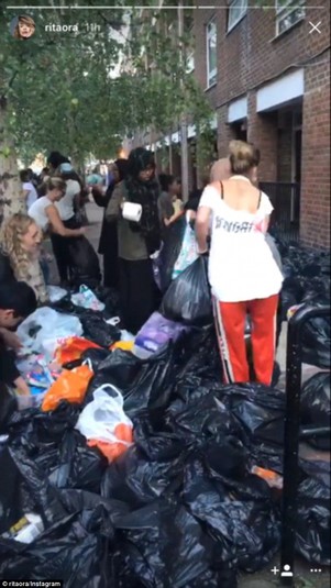 Співчуття жертвам також висловила співачка Рита Ора. Зірка прибула на місце пожежі й допомагала постраждалим
