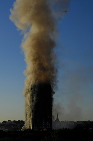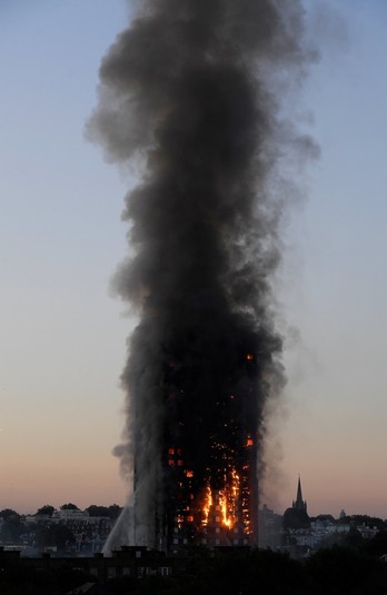 27-поверхова будівля спалахнула вчора вранці. Ніхто на останніх трьох поверхах не вижив. Вже відомо про 12 загиблих, але, за словами полійцейських, ця цифра може зрости до 50.