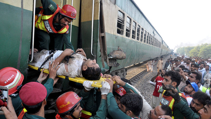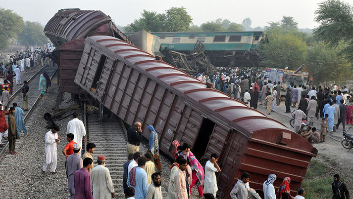 Пасажирський поїзд Awam Експрес, який прямував з Карачі в Пешавар, зіткнувся з попутним товарним поїздом, який раніше зробив екстрену зупинку. Чотири вагони зійшли з рейок, 15 осіб перебувають у критичному стані.