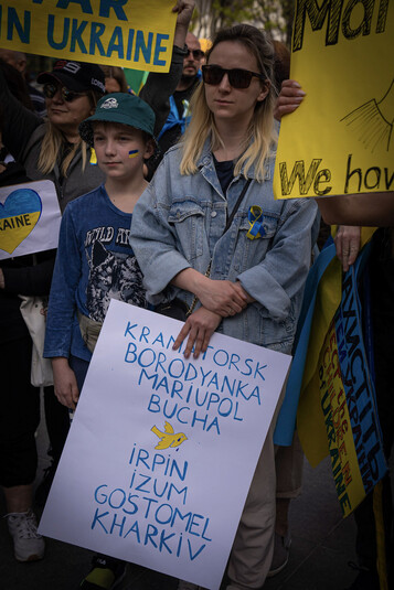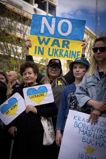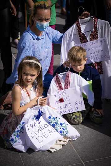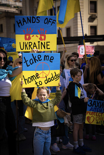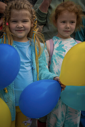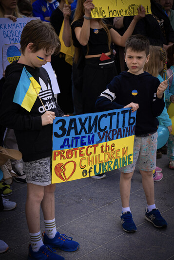 Зокрема, учасники заходу, до якого доєдналося багато батьків з дітьми, тримали в руках державні прапори України та плакати проти російської агресії.