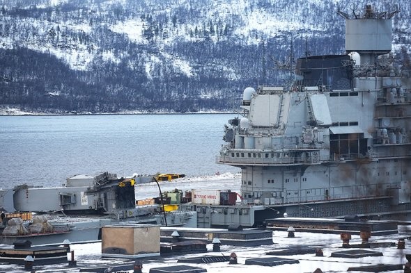 Через аварію в плавучому доці судноремонтного заводу в Мурманську (Росія) на палубу авіаносного крейсера «Адмірал Кузнєцов» впав 70-тонний баштовий кран, який пошкодив палубу бойового корабля і його корпус.