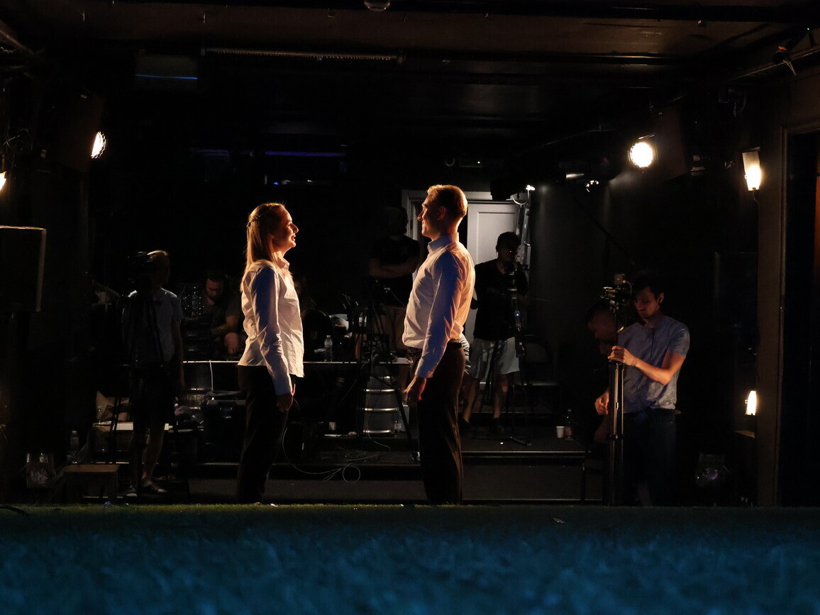 «Треба було виконувати все те саме, що й у сцені вистави, але з «маленьким» ускладненням – зробити це під водою. Актори проявили свій професіоналізм і впоралися з усіма викликами. Усі заплановані режисерські рішення вдалося втілити, і зараз, за монтажним столом, створюється магія кіно», – коментує режисер. Додає, що найважчим особисто для нього було перенесення деяких фрагментів вистави, у яких зміна персонажа відбувається через взаємодію з глядачами в залі.