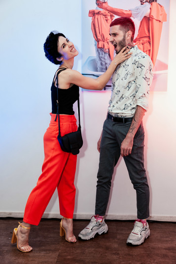 Гротескно-агрессивному арт-проекту в полной мере соответствовала и сама презентация. Прямо в помещении галереи, на глазах у звездных гостей, персонажи словно сходили с фото-картин: оживали, заставляли актеров подчиняться своему безумству и беспределу.