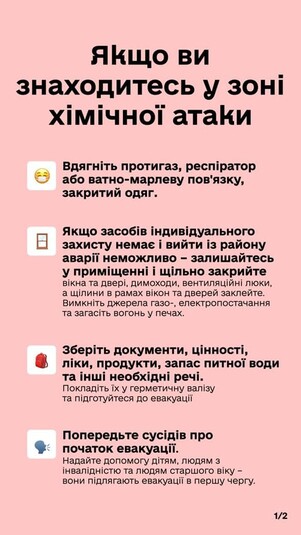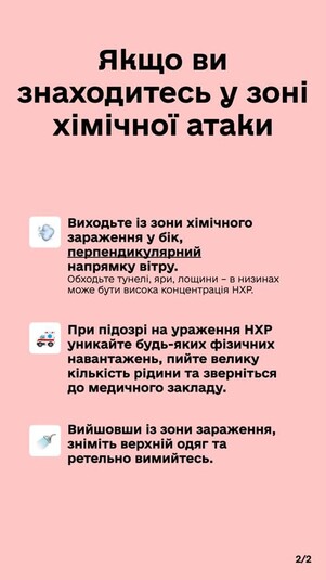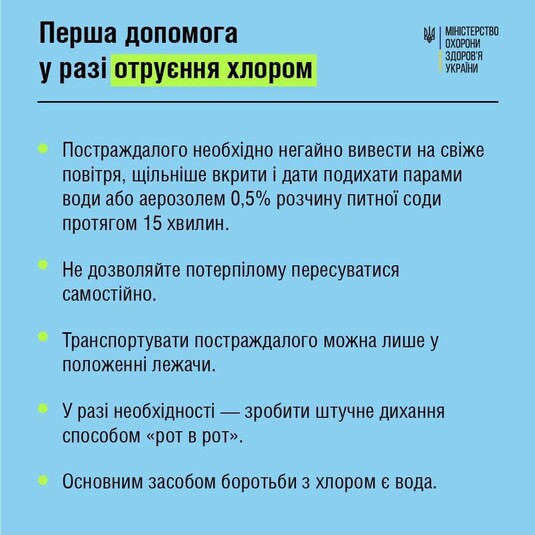 Агресор, звичайно, може завдати ударів по українських хімічних виробництвах, але це досить безглуздо, враховуючи, що там практично немає небезпечних хімічних речовин. Але що робити при отруєнні хлором чи аміаком, про всяк випадок треба знати.