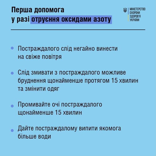 - При підозрі на ураження речовинами уникайте будь-яких фізичних навантажень, необхідно пити велику кількість рідини (чай, молоко, сік, вода) та звернутися до медичного закладу.