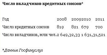 Сейчас, по официальным данным, действует 700 кредитных союзов, в которых задействованы деньги, по разным источникам, от 700 тыс. до 1,5 млн вкладчиков.