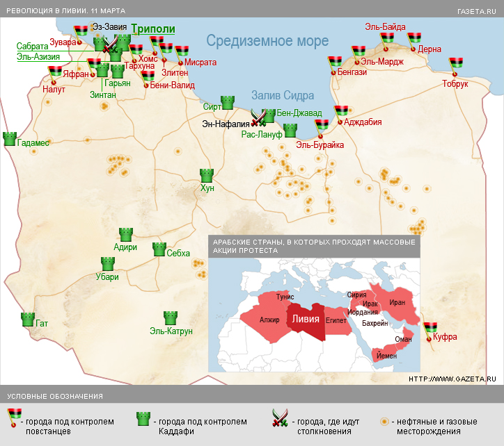 Бомбардировки Ливии пока не привели к коренному перелому в противостоянии, вопреки первоначальным прогнозам. Верные ливийскому лидеру войска предприняли новые попытки штурма Бенгази и Мисраты, находящихся под контролем повстанцев. Атака началась почти сразу после того, как ливийское командование в очередной раз объявило о прекращении огня, сообщает Reuters. Лидеры повстанцев заявили телеканалу «Аль-Джазира», что с начала боевых действий против повстанцев в его собственной стране погибло не менее 80 тыс. сторонников восстания и мирных жителей. Представители лояльных ливийскому правителю госструктур винят, в свою очередь, союзников в гибели 64 человек со стороны мирного населения и лояльных Каддафи войск.