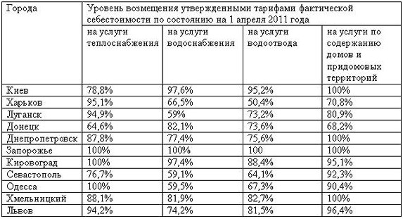Такие показатели можно оценить двояко: либо в Минрегионстрое не имеют понятия о настоящей себестоимости производства коммунальных услуг, либо Киевская власть нарушает закон. Согласно ст. 31 закона «О жилищно-коммунальных услугах» органы местного самоуправления устанавливают тарифы в размере не ниже экономически обоснованных затрат на их производство. В противном случае, местная власть должна возместить производителям/исполнителям услуг из регионального бюджета разницу между установленными тарифами и экономически обоснованными затратами на производство услуг. А как видно со слов начальника Главного управления по вопросам ценовой политики Киева Василия Яструбинского, никто никакой разницы оплачивать не намерен – все убытки ложатся на ЖЭКи.