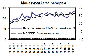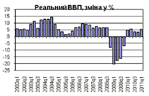 Помірне відновлення економіки України продовжується із повзучою інфляцією. Після скорочення ВВП на 14.8 відсотки у 2009 р., економіка зросла на 4.2 відсотки у 2010 та на 5.2 відсотки у першому кварталі 2011 року. Дані показують дедалі більшу роль внутрішнього попиту як чинника зростання, зокрема, роздрібний товарообіг збільшився на 15.2 відсотки у січні-травні р./р. Тим часом промислове виробництво сповільнилося з 9.7 відсотків у першому кварталі до 4.9 відсотків у квітні, а потім зросло до 8.6 відсотків р./р. у травні 2011, демонструючи волатильність товарних ринків. Розрив виробництва, адміністративне регулювання цін (напр. на продукти харчування та пальне) та затримки у коригуванні цін на житлово-комунальні послуги утримали ІСЦ в межах 10 відсотків р./р. у першому кварталі 2011 року. Однак з огляду на низьку статистичну базу 2010 року та посилення чинників виробничих витрат, ІСЦ зріс до 11 відсотків р./р. у травні. Ціни виробників піднялися більш ніж на 18 відсотків р./р.