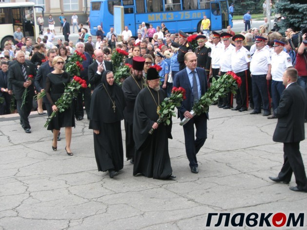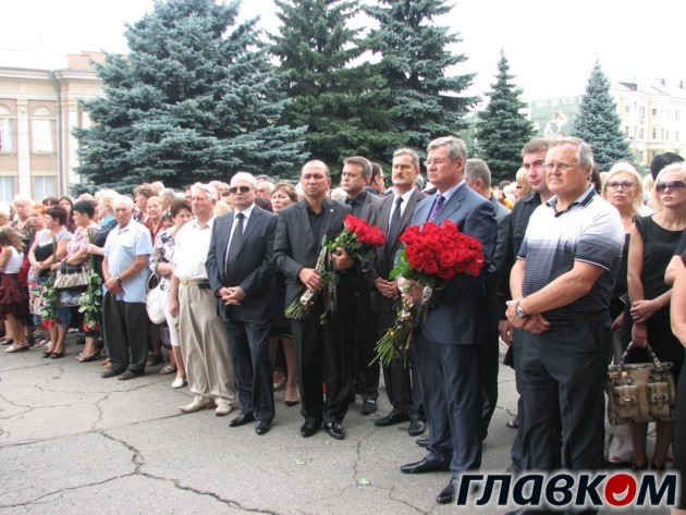 Впрочем, все дороги города в этот день вели исключительно в Театр юного зрителя, где и проходила церемония прощания с экс-мэром города. Еще до открытия ТЮЗа на площади перед ним собралось около тысячи человек, а после того, как был открыт доступ к гробу с телом покойного, к театру подтянулось еще несколько сотен макеевчан, которые утирали слезы и преимущественно говорили о своем земляке добрые слова.