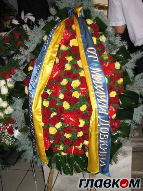 Более того, на министров и мэров в этот день мало кто обращал внимание - они никак не выделялись из толпы и на всех церемониях стояли бок о бок с обычными гражданами, теснясь среди сотен различных венков, присланных из всех уголков Украины. Здесь были венки от Верховной Рады и Кабмина, от различных депутатов, мэров городов, а также целых областных советов и облгосадминистраций. Встречались венки от посольств разных стран и различных предприятий, и, конечно же, персональные венки от людей, близко знавших Василия Джарты. Примечательными, например, оказались венки от знаменитых харьковчан Михаила Добкина и Геннадия Кернеса, которые стояли строго по обе стороны лестницы, ведущей к гробу с телом покойного, или венки от уголовного-розыска Макеевки и МВД, которые были признаны самыми красивыми.