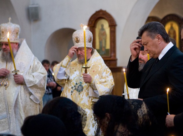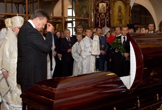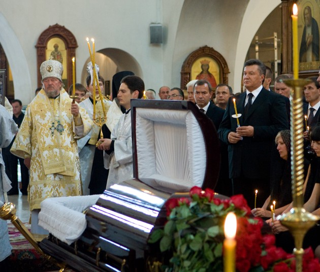 Они же попросили, чтобы в Свято-Георгиевский храм, где впоследствии состоялось отпевание покойного, не приезжала пресса. Родственникам, по всей видимости, хотелось столь интимный момент прощания со своим близким провести исключительно наедине со своей семьей. Поэтому даже многие высокопоставленные гости, среди которых, по словам пресс-секретаря Донецкого губернатора Риммы Филь, были замечены народный депутат Украины Ринат Ахметов и вице-премьер-министр, министр инфраструктуры Борис Колесников, спокойно дожидались окончания церемонии в близлежащем сквере. Непосредственно в храм прошел только Президент Украины Виктор Янукович, а также еще около сотни самых близких покойному людей.