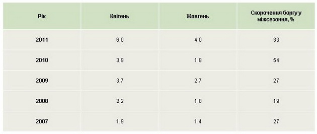 Порівняно з сезоном 2009-2010 років рівень «вибивання» боргів з ТКЕ зменшився. У 2010 році до початку сезону заборгованість вдалося скоротити на 54%.